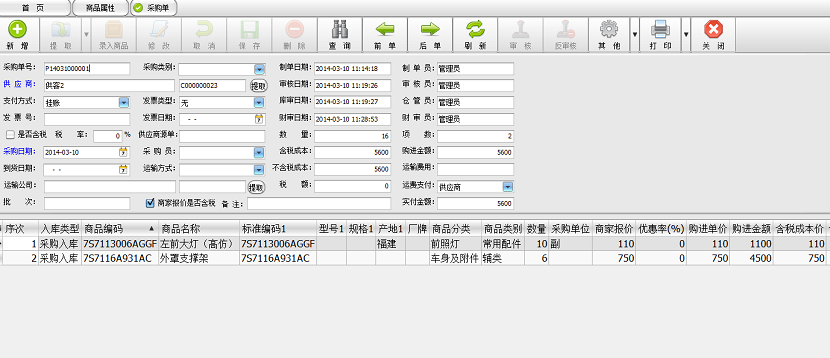 也叫采购订货单,可在每月制定相应的采购计划,根据仓库情况和出库情况制作订货单。补充库存计划定期制定一次,如每月月底。补充库存计划,是针对常备库存零件,为了满足日常销售的需要而补充的订货。如果销售是非常平稳和安全库存量足够的话,那么,定期的补充库存计划就可以满足日常销售的需要。但是,由于销售量的起伏性,可能使零件突然缺档。因此,我们每天还应当巡查库存,看看哪些零件的库存已经低于库存低限,对于低于库存低限的零件,应当马上制定紧急订货计划。针对非常备库存的零件,只要发现客户有订货,在紧急订货计划中也要马上反应。在订货入库中可以根据供应商调出所有的订货单,有选择性的入库。也可以在采购入库单中直接选中订货单整单入库。