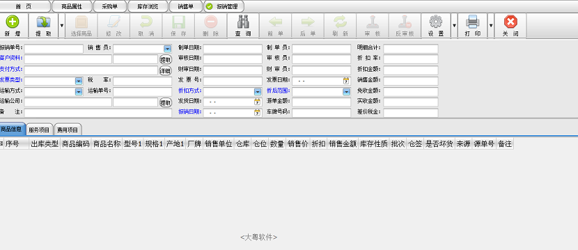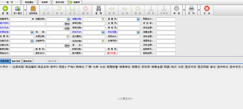8、销售模块除记录商品的库存销售外,也支持费用项目和服务项目的录入,比如打包费、运输费、安装费等信息,使销售活动尽可能的贴近实际的账目形式。