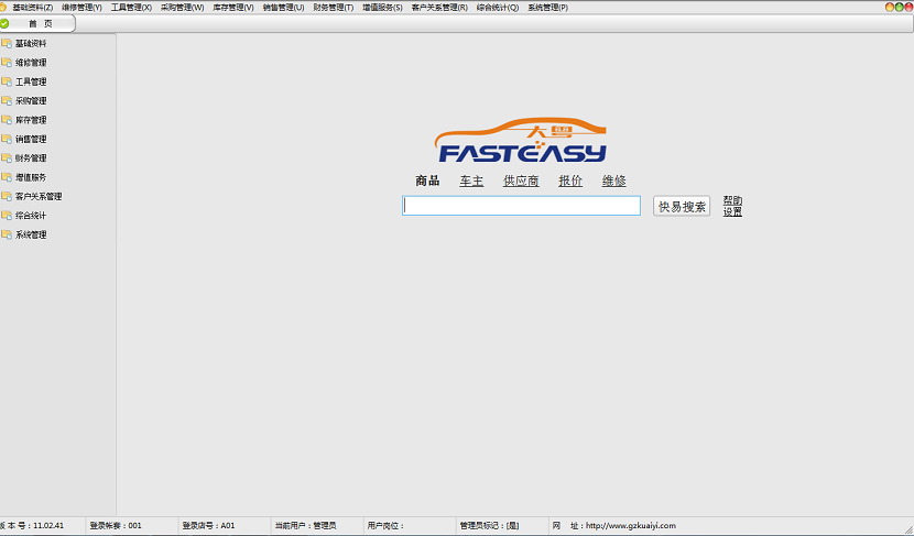 快易软件优点:快易汽修管理系统是一套专业的汽车行业管理软件,主要面对汽车维修厂业务流程管理的管理系统;软件功能强大、通用性强、界面友好、操作简便、功能实用。更是将汽车维修软件、汽车配件软件、客户管理软件完美结合而成的一款专业汽车维修管理软件。