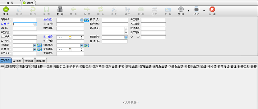 维修业务:委托修理单、派工单、领料单、车间调度、结算单、保险跟踪、维修服务跟踪、证照年审查询、索赔定价管理、
