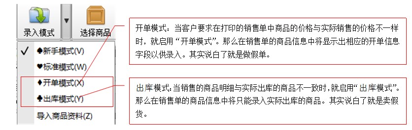 ● 录入模式中的“开单模式”和“出库模式”又是干什么用的呢?