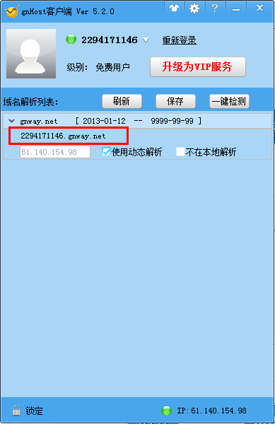 3、登陆该客户端,获得一个二级域名,如下图