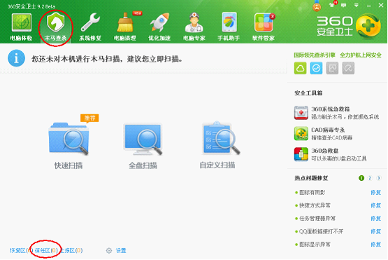 先打开360安全卫士的主界面,选择木马查杀模块,在界面下方,选择信任区