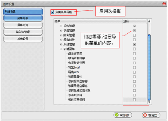 如果启用了导航菜单,可以通过菜单选择来设置导航菜单显示的内容。设置后点“确定”保存。