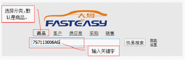 如图所示:商品搜索对应的字段有:商品编码、商品名称、原厂编码和标准编码。