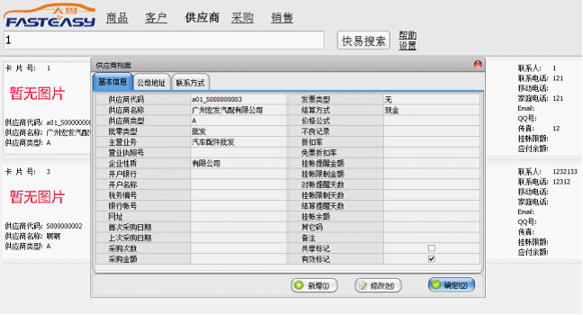 ●供应商:目前可以查询供应商的基本信息和详细信息,如下图所示: