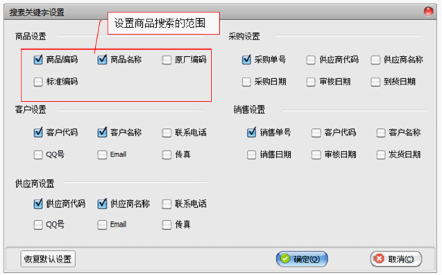 设置的内容与搜索分类相对应,表示了在不同搜索分类中关键字的搜索范围。